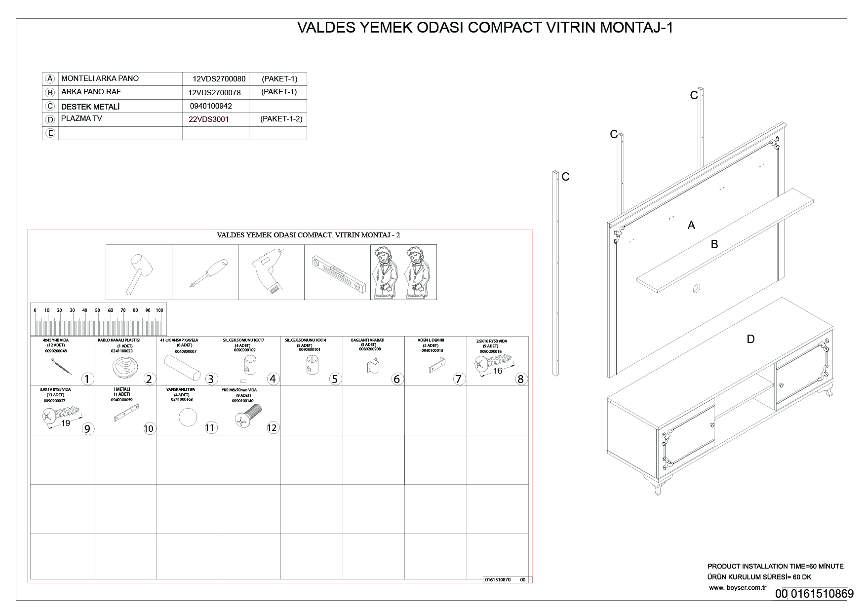 0940100942, DESTEK METALİ 3'LÜ VALDES