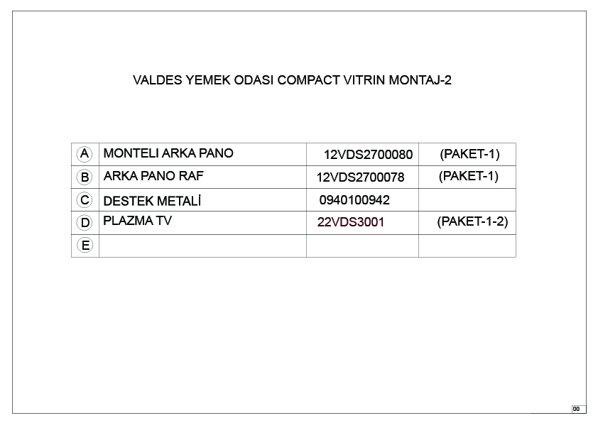12VDS2700080OPOP, COMP.VİTRİN MONTELİ ARKA PANO/OPAK BEYAZ